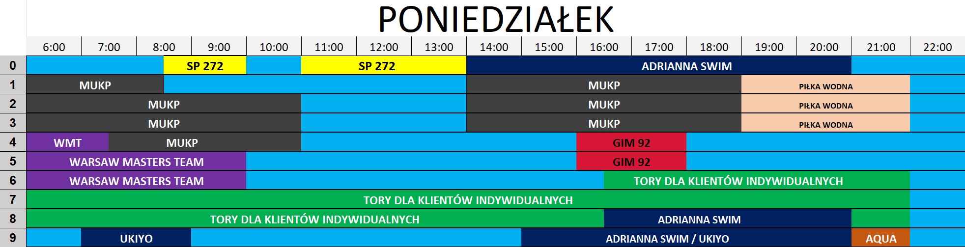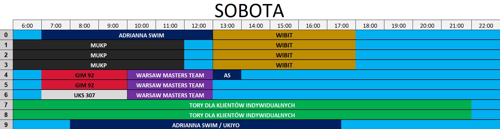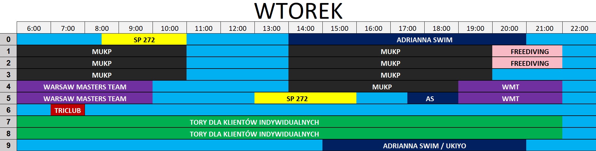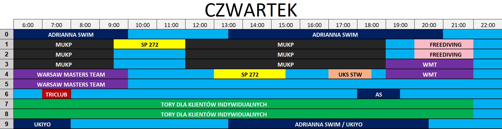 Zgodnie z pkt. V ppkt. 4 Regulaminu korzystania z pływalni - tory skrajne mogą być zarezerwowane na prowadzenie nauki pływania.