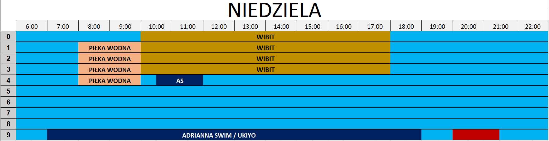 Grafik ilości torów objętych rezerwacją - Basen Rekreacyjny