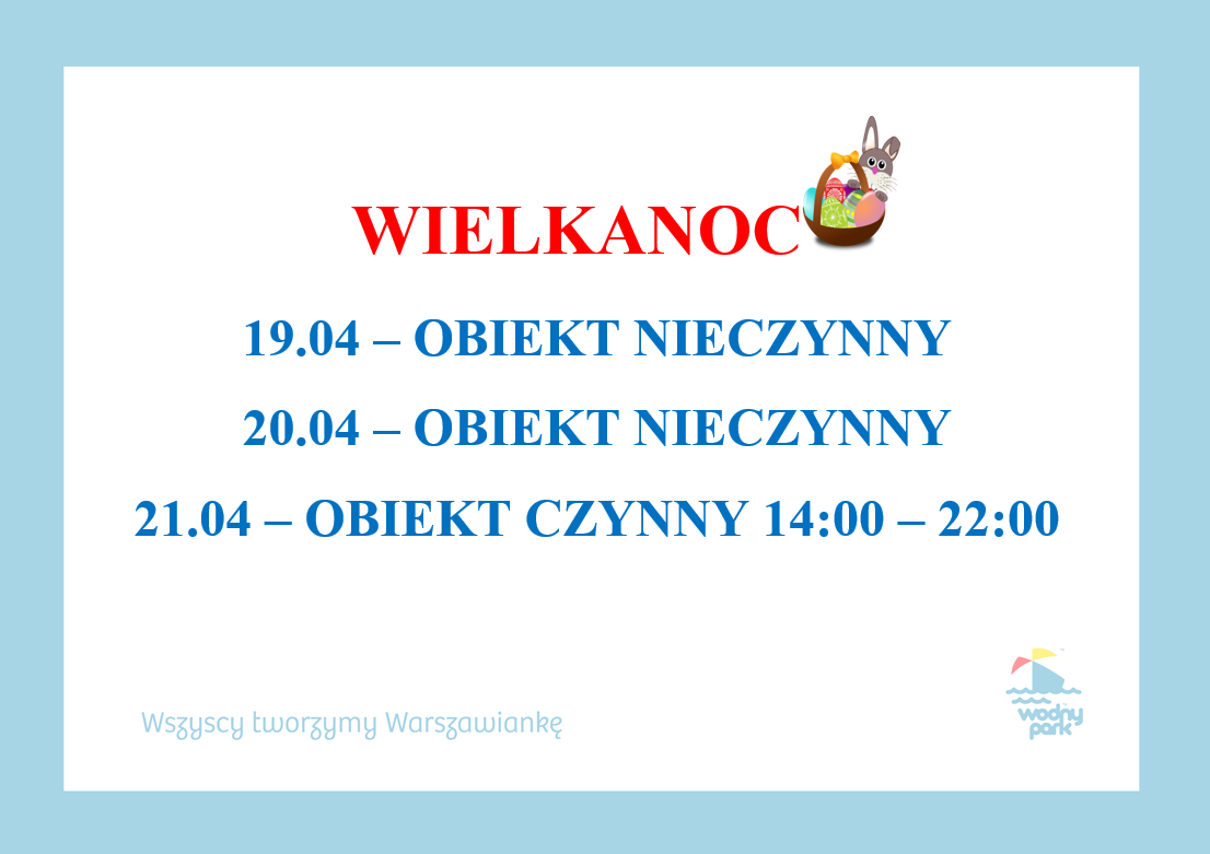 Link do godzin otwarcia obiektu w dni świąteczne: https://www.wodnypark.com.pl/o-nas/godziny-otwarcia.html