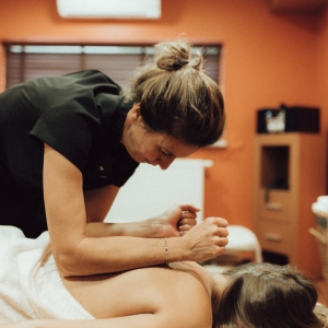 Masaż z elementami terapii manualnej koncentrujący się na obszarze bólowym, jest formą fizycznego oddziaływania na organizm ludzki za pomocą bodźców mechanicznych, głównie pod postacią ucisku na tkanki, którego celem jest wywołanie odczynu miejscowego i ogólnego. Działanie miejscowe: zwiększa przepływ krwi i chłonki, wytwarzane jest ciepło, naczynia i mięśnie ulegają rozluźnianiu, następuje przyspieszone usuwanie produktów przemiany materii. Działanie odległe: przyspieszone krążenie krwi i chłonki, uwalnianie hormonów tkankowych: histaminy, aminy, prostaglandyny. Masaż usprawniający stosuje się dla złagodzenia sztywności, napięcia i bólu.