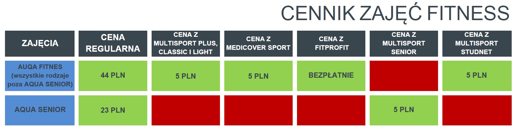 W przypadku wejść na zajęcia korzystając z karty MULTISPORT PLUS/CLASSIC/LIGHT/SENIOR/STUDENT , MEDICOVER SPORT I FITPROFIT opłacony czas pobytu to 60 minut.